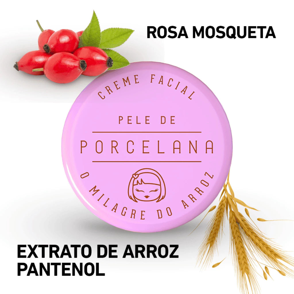 ✔ Pele de Porcelana – renovador facial que hidrata profundamente, clareia manchas e uniformiza o tom da pele.