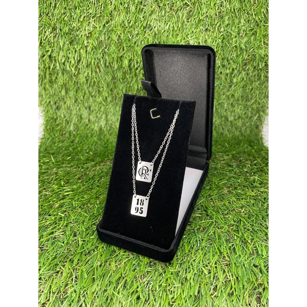 Kit Presente Caixinha Veludo + Cordão Escapulário 60cm Prata Time Flamengo Aço Inox